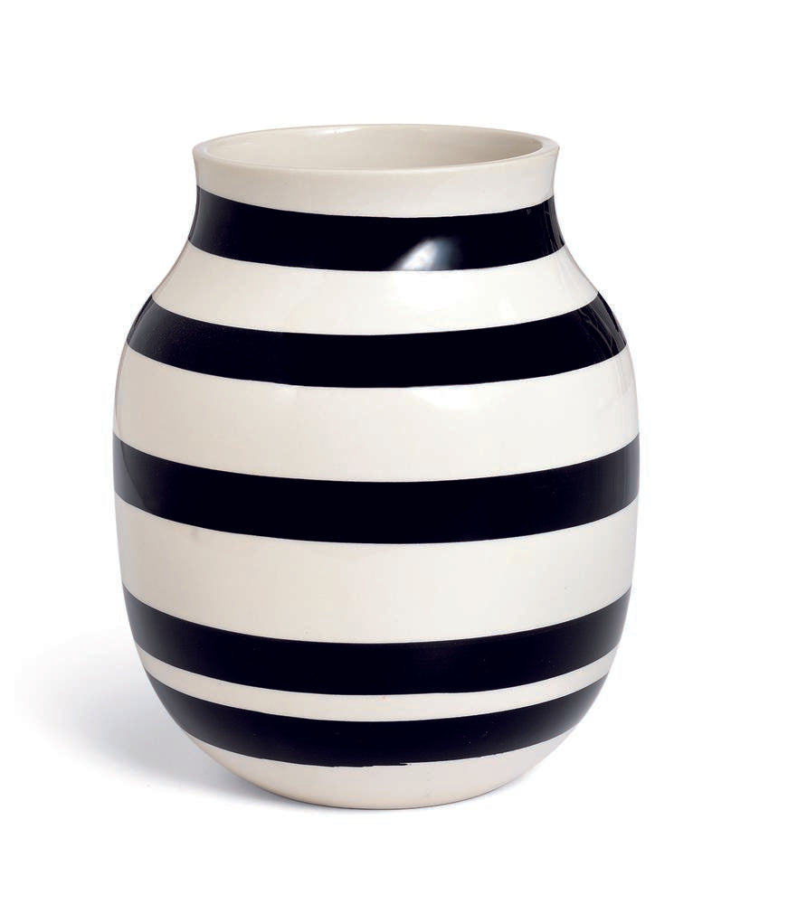 Mit der handbemalten Omaggio Vase in Schwarz und Weiß holst du dir ein Stück dänisches Design in dein Zuhause. Die sanft bauchige Form und die markanten Streifen verleihen der 20 cm hohen Vase eine spielerische Leichtigkeit. Sie eignet sich perfekt, um ein paar frische Blüten oder Zweige wirkungsvoll zu arrangieren und verleiht jeder Ecke einen modernen Akzent.