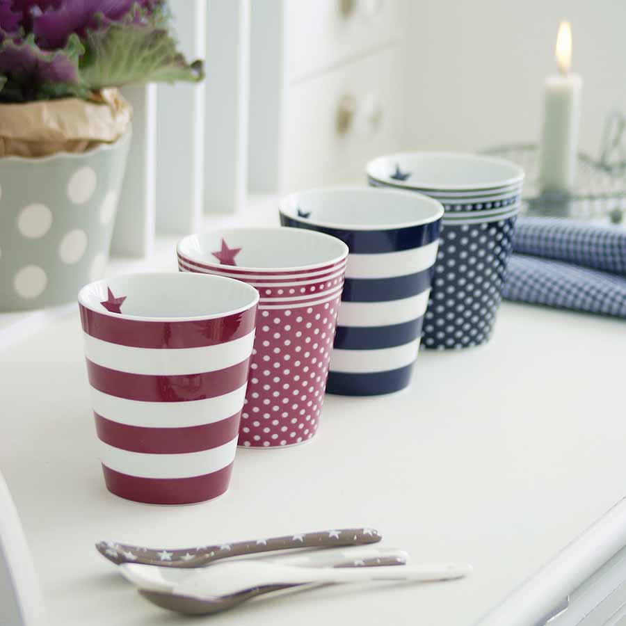 Die klaren Streifen erinnern an Seemannsshirts und wecken Urlaubsgefühle. Der Becher eignet sich für heiße und kalte Getränke und bringt maritimen Chic in deine Küche.
