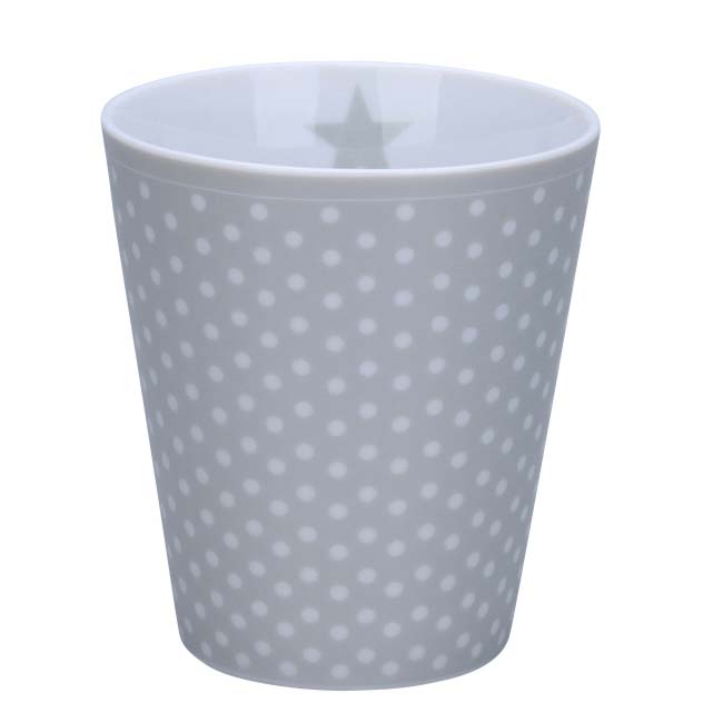 Mit einem Fassungsvermögen von 330 ml und einer Höhe von 10 cm bietet der Becher genug Platz für dein Lieblingsgetränk【21293775617582†screenshot】. Die unaufdringliche Farbgestaltung in Grau mit zarten Punkten wirkt modern und wohnlich zugleich. Hergestellt aus hochwertigem Porzellan ist der Becher robust und spülmaschinengeeignet – ideal für den täglichen Gebrauch. Die raffinierte Sternprägung am Innenrand zeigt die Liebe zum Detail, für die Krasilnikoff bekannt ist.
