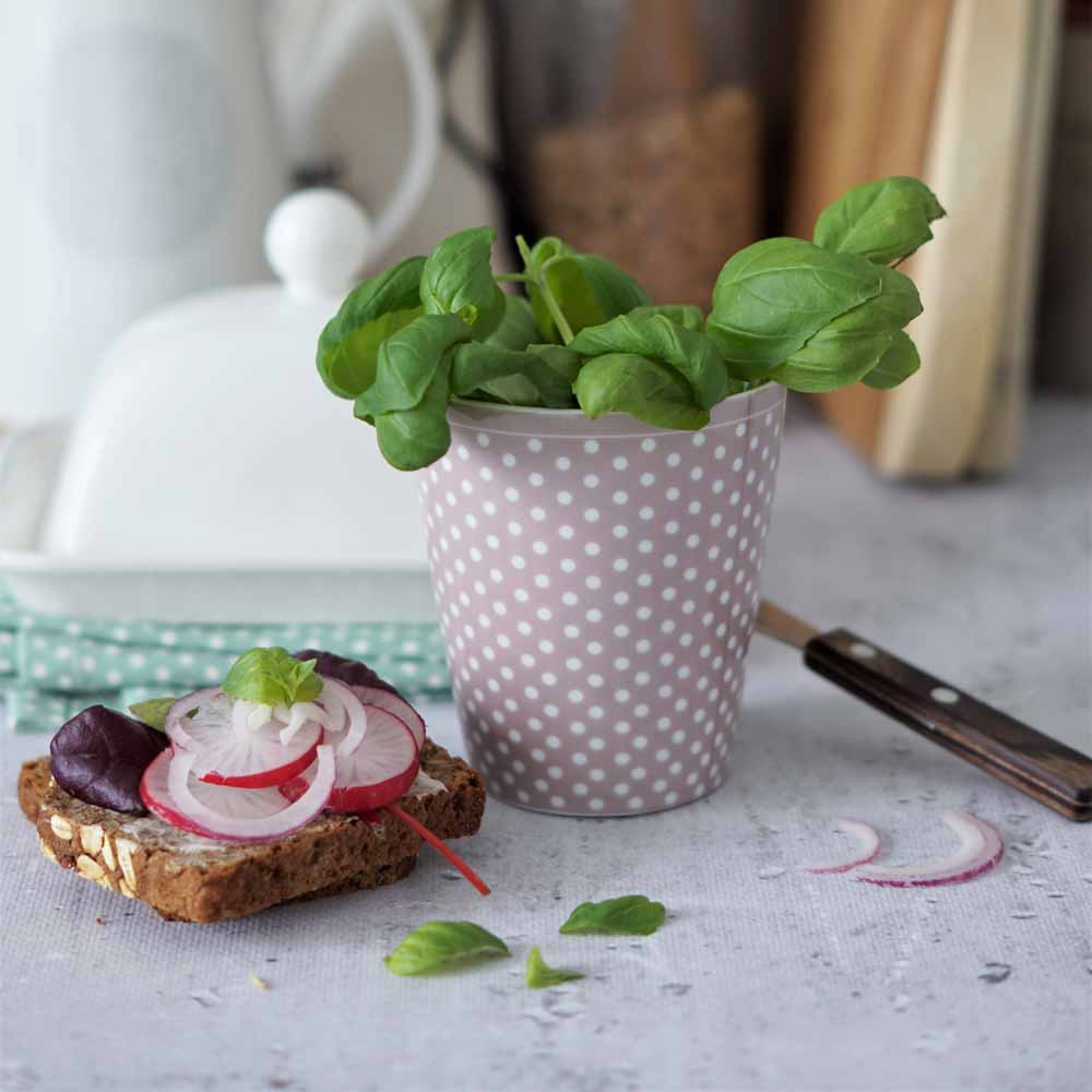 Die Krasilnikoff Happy Mug verleiht deinem Morgen einen Hauch von Skandinavischem Charme. Das verspielte Design mit den kleinen weißen Punkten auf staubrosa Hintergrund und dem niedlichen Stern im Inneren zaubert dir jedes Mal ein Lächeln ins Gesicht.