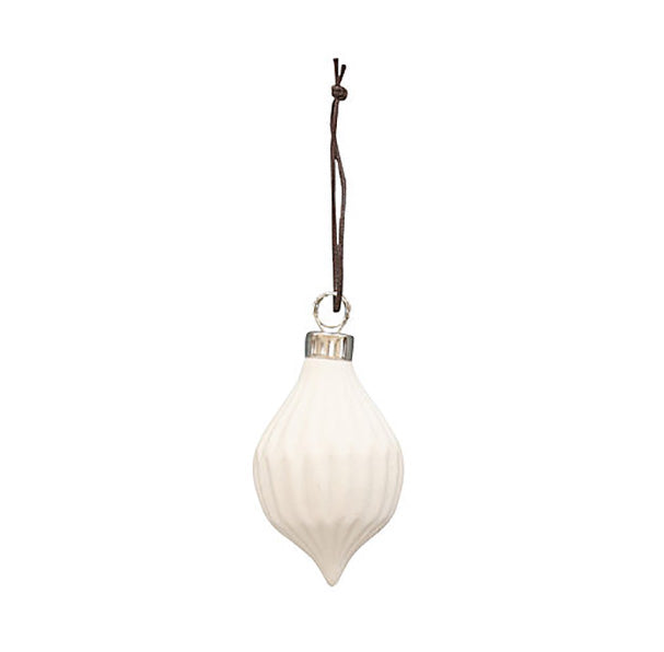 Wie ein gefrorener Regentropfen wirkt diese zarte Weihnachtskugel aus weißem Glas. Ihr sanftes, mattes Finish schimmert dezent im Kerzenlicht und erinnert an Schnee und Eis. Die längliche Form bringt Bewegung in deine Dekoration und lässt sich wunderbar mit runden Kugeln kombinieren.