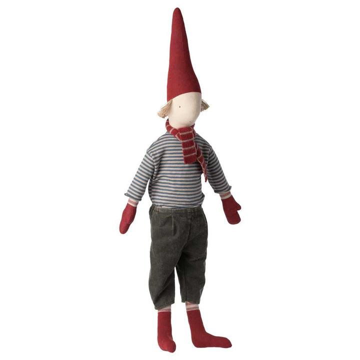 Dieser Maileg Pixy Wichtel Junge Größe 5 bringt skandinavischen Weihnachtszauber in dein Zuhause. Mit seiner langen roten Zipfelmütze, den gestreiften Socken und dem weichen, liebevoll gestalteten Stoffkörper lädt er zum Kuscheln, Dekorieren und fantasievollen Spielen ein – ob als treuer Begleiter im Kinderzimmer oder als