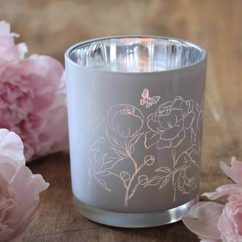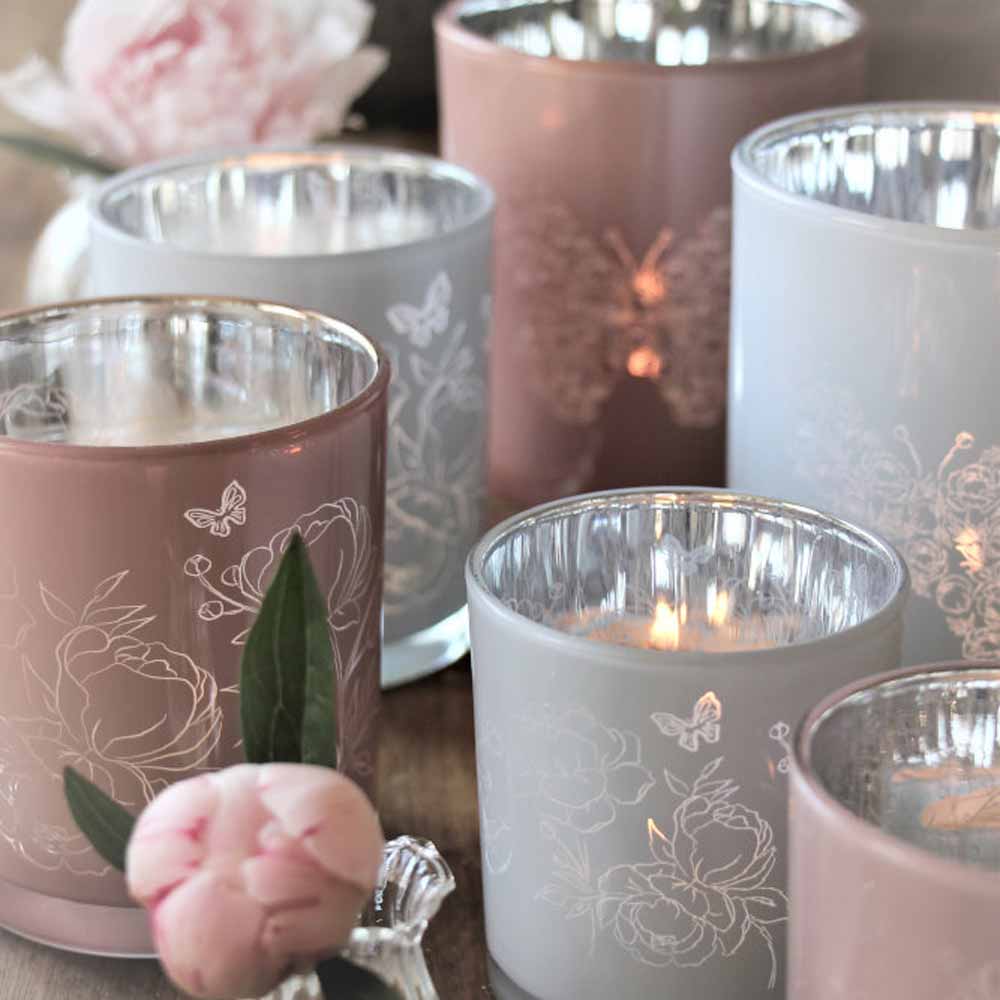 Majas Cottage, eine herrlich romantisch-verspielte Marke aus Schweden. Das süße Teelicht zaubert herrliches Licht in Deinem Zuhause. Es hat eine weiße Außenfarbe mit Blüten und Schmetterlingen, die Innenseite ist silbern. Sobald Du ein Teelicht entzündest schimmern die zarten Blüten und Schmetterlinge durch das Glas hindurch. Ein tolles Lichtspiel.