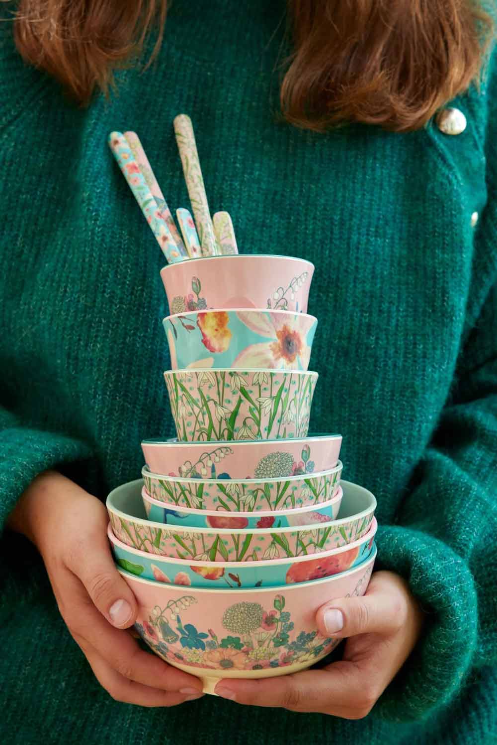 Der Melaminbecher "Selma Flower" von Rice bringt mit seinem zarten Blumenprint und dem fröhlichen Farbmix sofort gute Laune auf den Tisch! Ob für den Frühstückssaft, den Nachmittagskaffee oder den Kindergeburtstag – dieser Becher ist ein echtes Lieblingsstück für die ganze Familie.