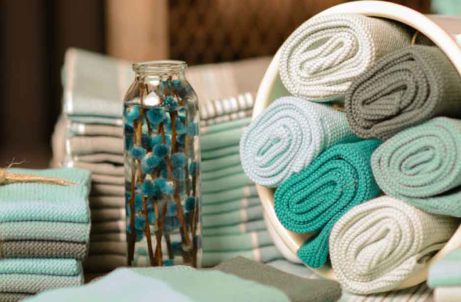 Falte die Tücher und lege sie auf einer schönen Holzschale oder hänge sie dekorativ an einen Küchenhaken – so werden sie zum stilvollen Accessoire in Deiner Küche.