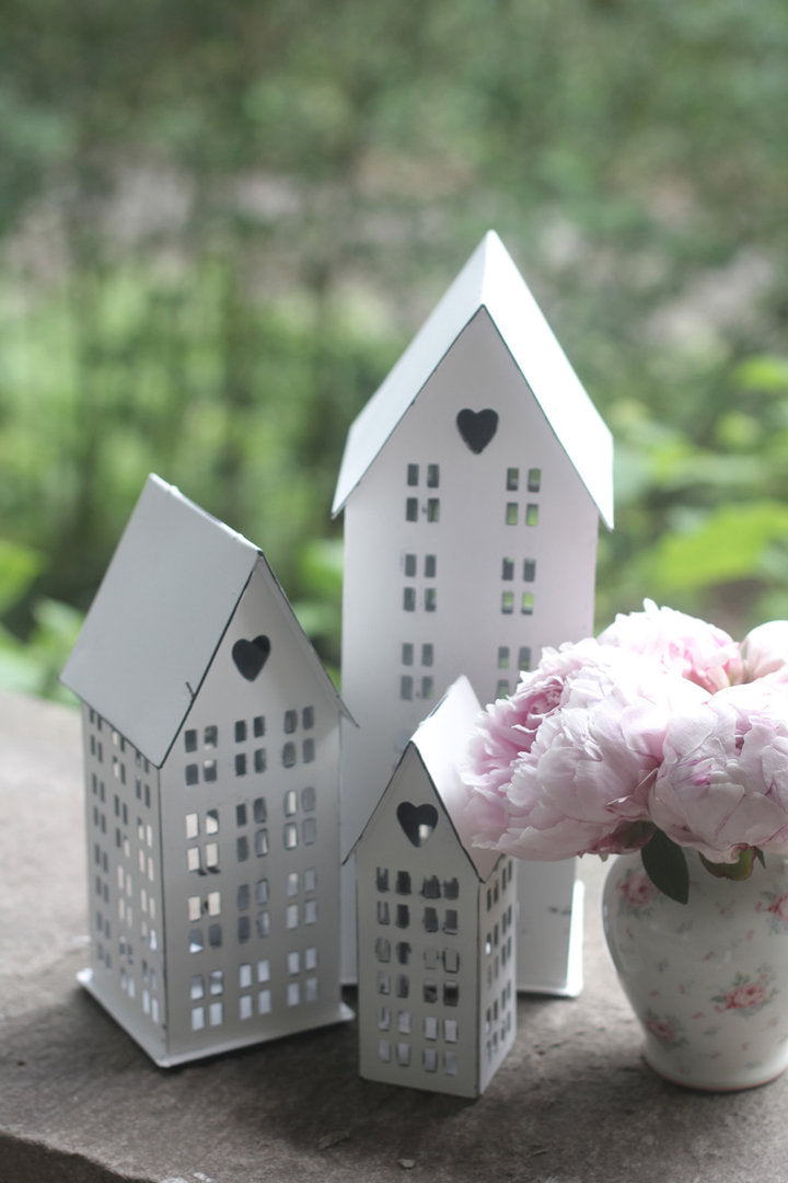 Wir lieben die zauberhaften Metallhäuser von VL Home. Sie sind mit einer weißen Patina bestrichen und erleuchten im schönen Shabby-Chic-Look. Als 4er-Set auf Deine Fensterbank oder Deine Kommode gestellt, ergeben sie ein tolles Quartett in Deinem Zuhause. Du kannst sie mit einer Lichterkette oder einem Teelicht bestücken und dann erstrahlen sie in zauberhaftem Lichterglanz. Wir haben sie in vier verschiedenen Größen vorrätig!